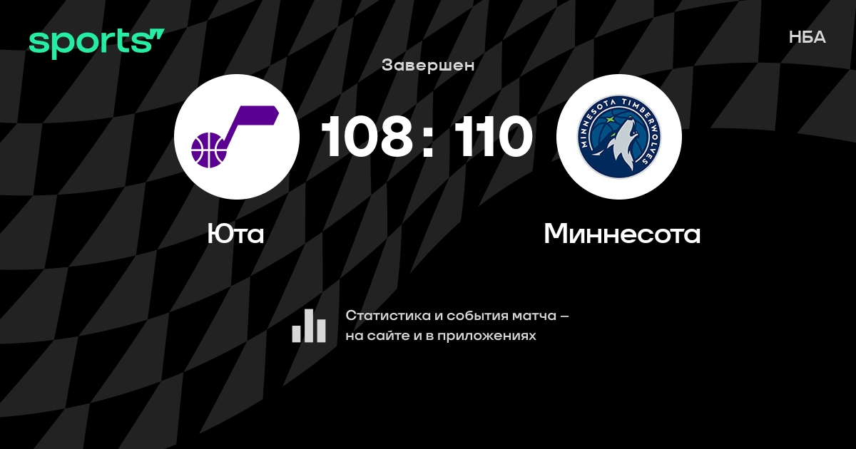 В прошедшем матче в рамках турнира НБА состоялась встреча команд Юта - Миннесота со счетом 108 : 110.