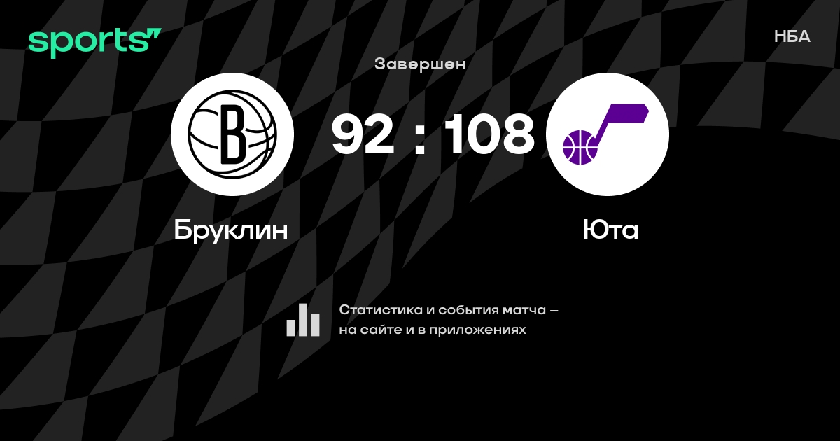 В прошедшем матче в рамках турнира НБА состоялась встреча команд Бруклин - Юта со счетом 92 : 108.