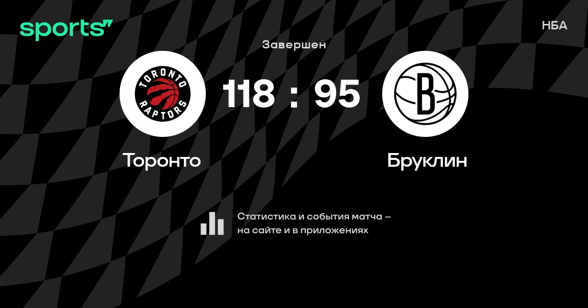 В прошедшем матче в рамках турнира НБА состоялась встреча команд Торонто - Бруклин со счетом 118 : 95.
