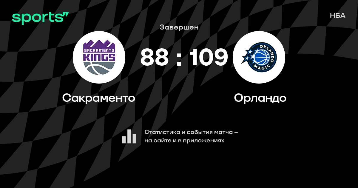 В прошедшем матче в рамках турнира НБА состоялась встреча команд Сакраменто - Орландо со счетом 88 : 109.