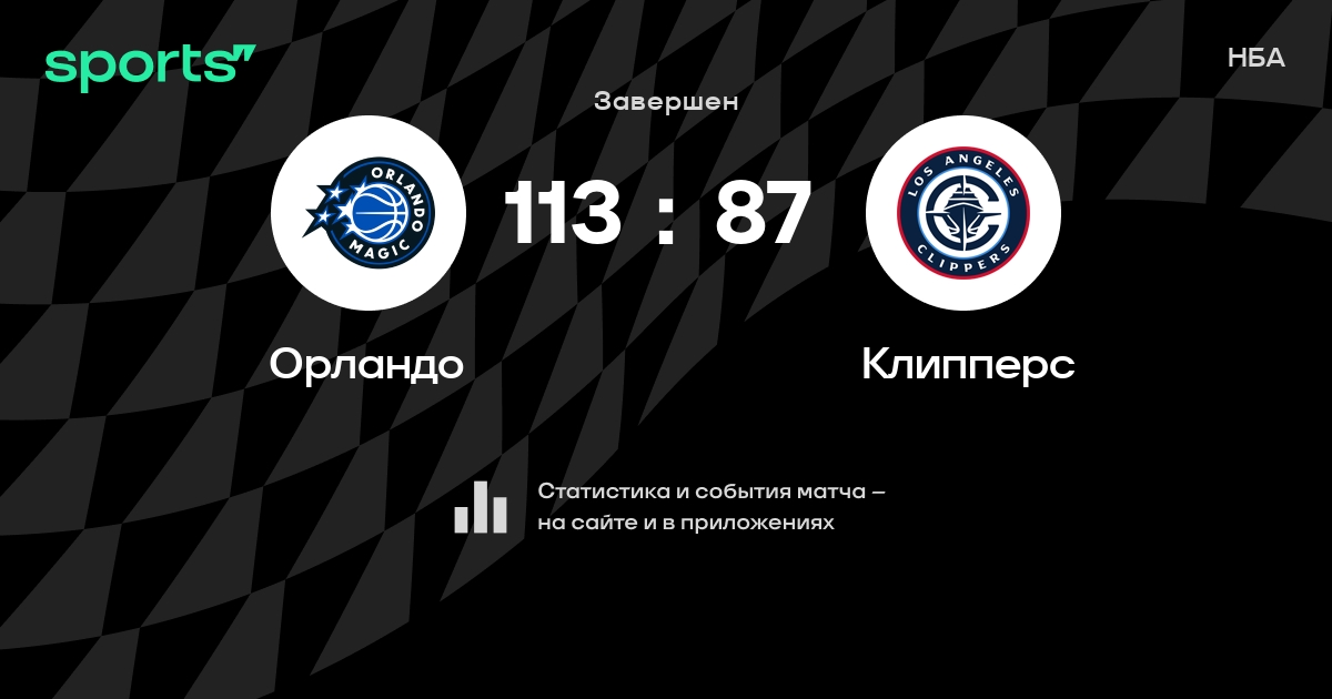 В прошедшем матче в рамках турнира НБА состоялась встреча команд Орландо - Клипперс со счетом 113 : 87.