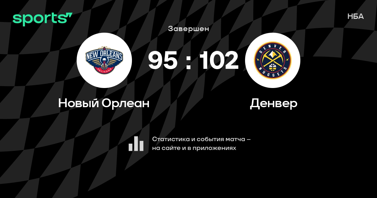 В прошедшем матче в рамках турнира НБА состоялась встреча команд Новый Орлеан - Денвер со счетом 95 : 102.