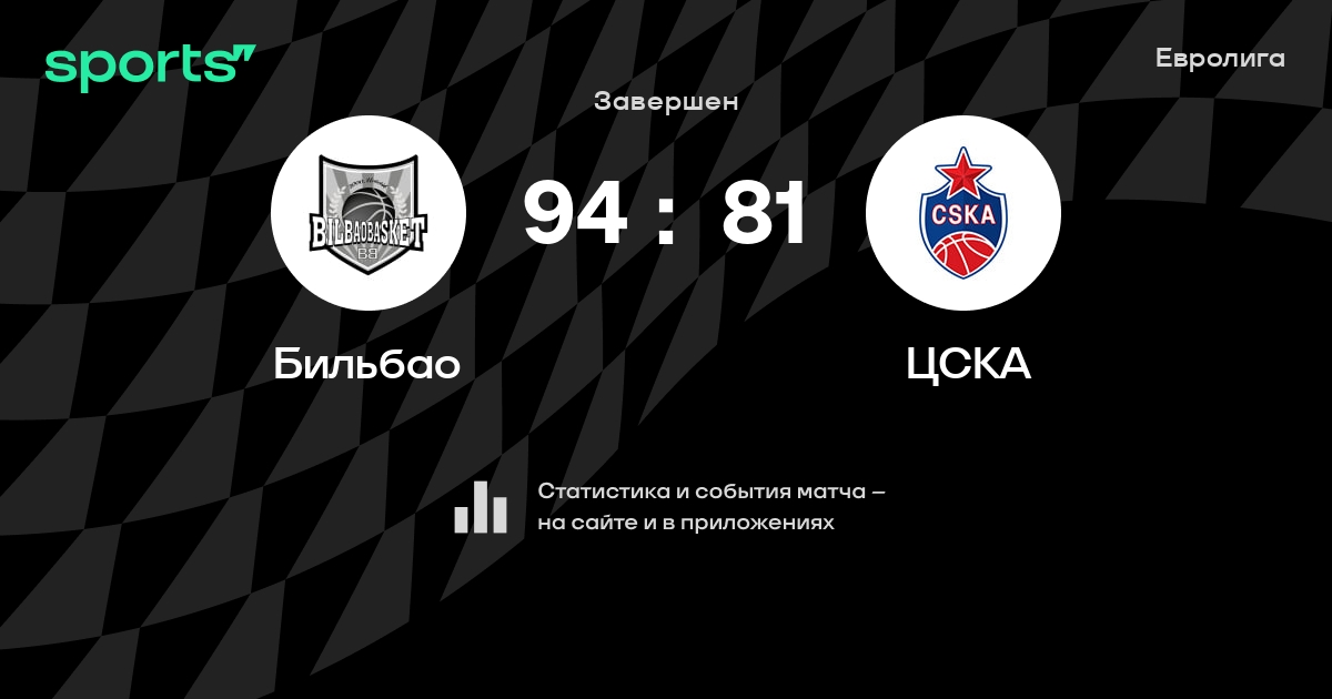 В прошедшем матче в рамках турнира Евролига Четвертьфинал состоялась встреча команд Бильбао - ЦСКА в городе Bilbao на стадионе Camino Tellaetxe со счетом 94 : 81.