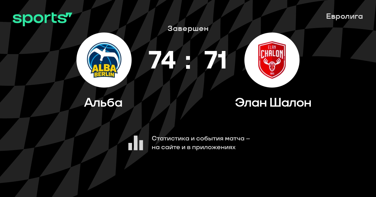 В прошедшем матче в рамках турнира Евролига Группа B состоялась встреча команд Альба - Элан Шалон в городе Берлин (Германия) на стадионе Убер Арена (вместимость - 16000)