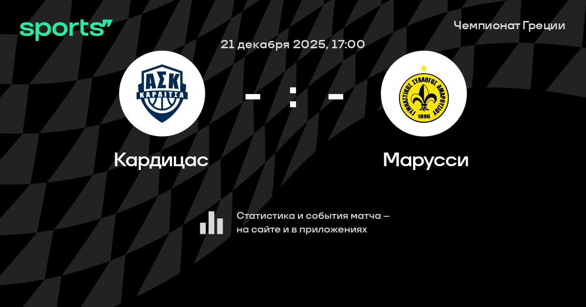 В предстоящем матче в рамках турнира Чемпионат Греции пройдет встреча команд Кардицас - Марусси в городе на стадионе Karditsa.