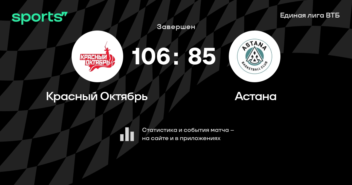 В прошедшем матче в рамках турнира Единая лига ВТБ состоялась встреча команд Красный Октябрь - Астана в городе Волгоград (Россия) на стадионе Альянс-Баскет