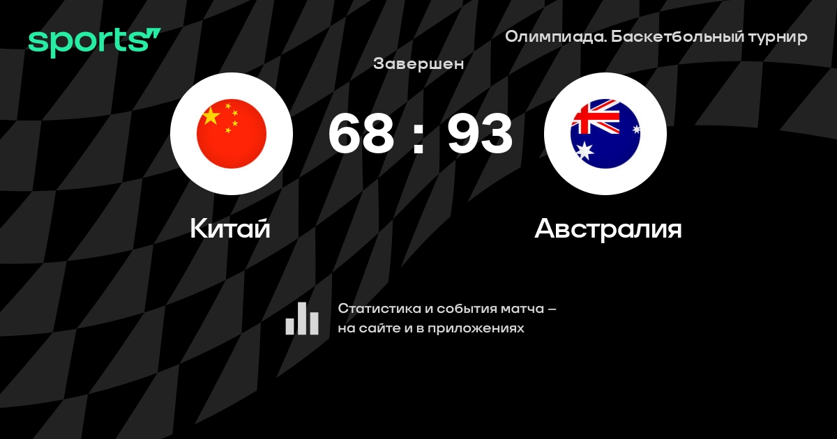 В прошедшем матче в рамках турнира Олимпиада. Баскетбольный турнир состоялась встреча команд Китай - Австралия в городе Rio de Janeiro на стадионе Carioca Arena 1