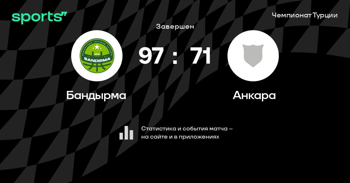В прошедшем матче в рамках турнира Чемпионат Турции состоялась встреча команд Бандырма - Анкара в городе Balikesir на стадионе Kara Ali Acar Spor Salonu