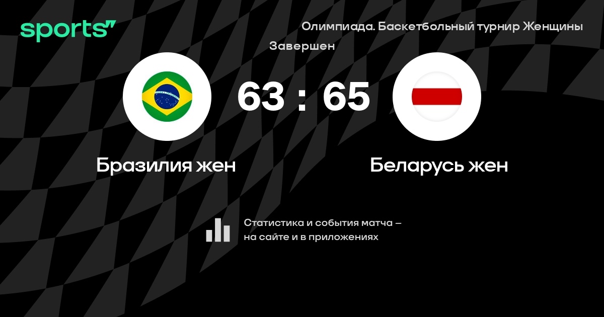 В прошедшем матче в рамках турнира Олимпиада. Баскетбольный турнир Женщины состоялась встреча команд Бразилия жен - Беларусь жен в городе Rio de Janeiro на стадионе Youth Arena