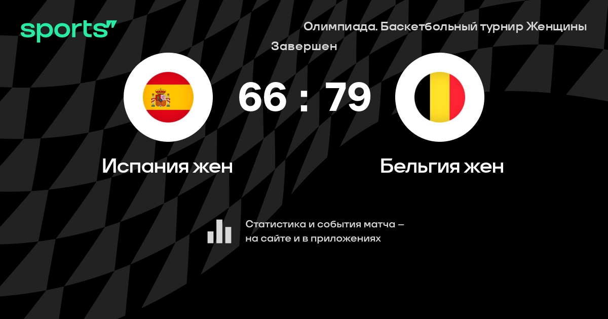В прошедшем матче в рамках турнира Олимпиада. Баскетбольный турнир Женщины Четвертьфинал состоялась встреча команд Испания жен - Бельгия жен в городе Париж (Франция) на стадионе Аккор Арена (вместимость - 15609)