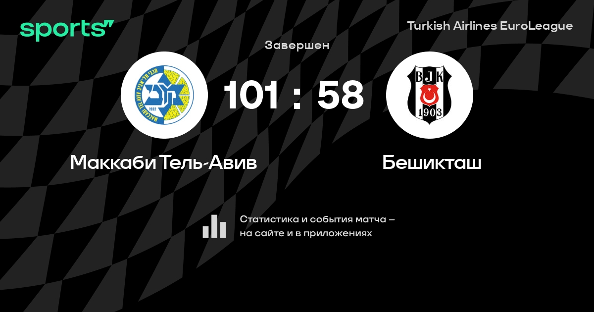 В прошедшем матче в рамках турнира Turkish Airlines EuroLeague Топ 16. Группа F состоялась встреча команд Маккаби Тель-Авив - Бешикташ в городе Тель-Авив (Израиль) на стадионе Менора-Мивтахим Арена (вместимость - 11700)