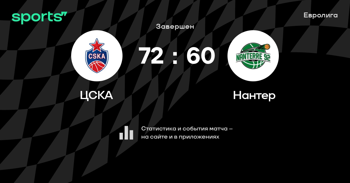 В прошедшем матче в рамках турнира Евролига Группа A состоялась встреча команд ЦСКА - Нантер в городе Москва (Россия) на стадионе УСК ЦСКА им. А.Я. Гомельского (вместимость - 4500)