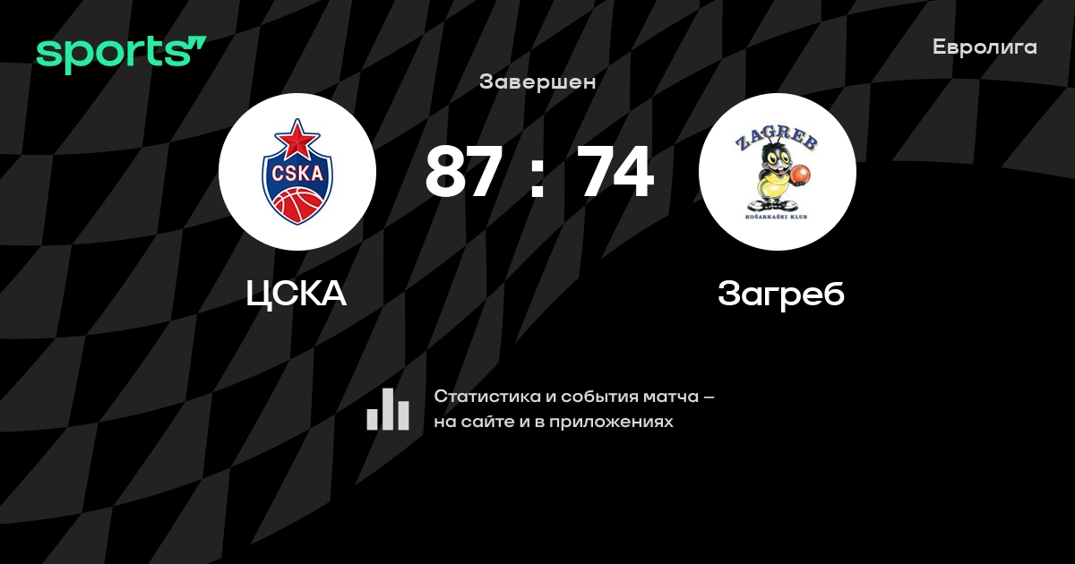 В прошедшем матче в рамках турнира Евролига Группа B состоялась встреча команд ЦСКА - Загреб в городе Москва (Россия) на стадионе УСК ЦСКА им. А.Я. Гомельского (вместимость - 4500)