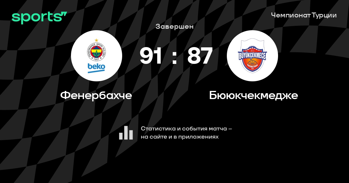 В прошедшем матче в рамках турнира Чемпионат Турции состоялась встреча команд Фенербахче - Бююкчекмедже в городе Стамбул (Турция) на стадионе Улкер Спортс Арена (вместимость - 13000)