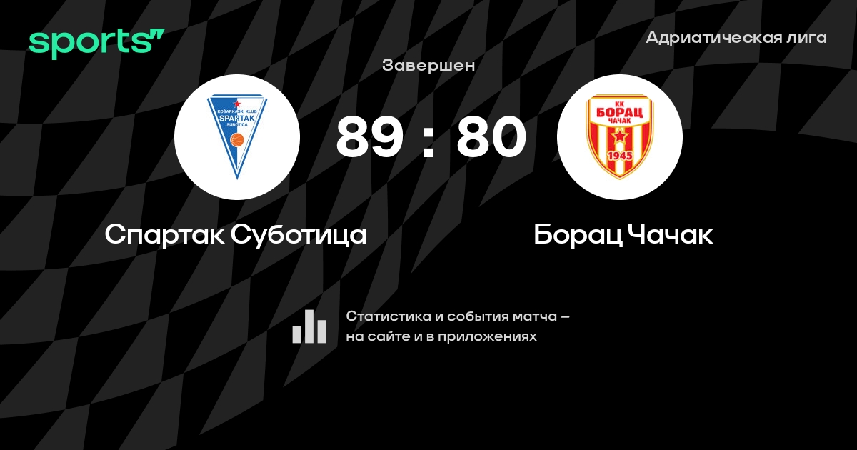 В прошедшем матче в рамках турнира Адриатическая лига состоялась встреча команд Спартак Суботица - Борац Чачак в городе на стадионе Sportska hala Dudova Šuma