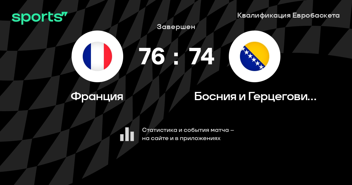 В прошедшем матче в рамках турнира Квалификация Евробаскета состоялась встреча команд Франция - Босния и Герцеговина в городе на стадионе Centre Orléans Métropole