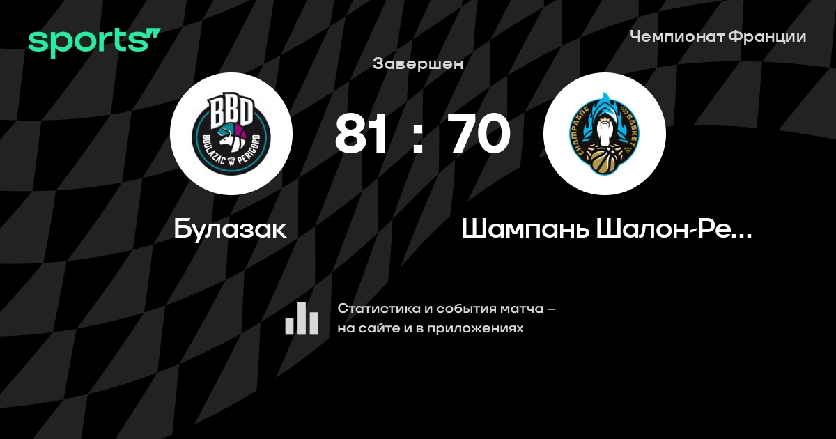 В прошедшем матче в рамках турнира Чемпионат Франции состоялась встреча команд Булазак - Шампань Шалон-Реймс в городе на стадионе Salle des sports du Palio