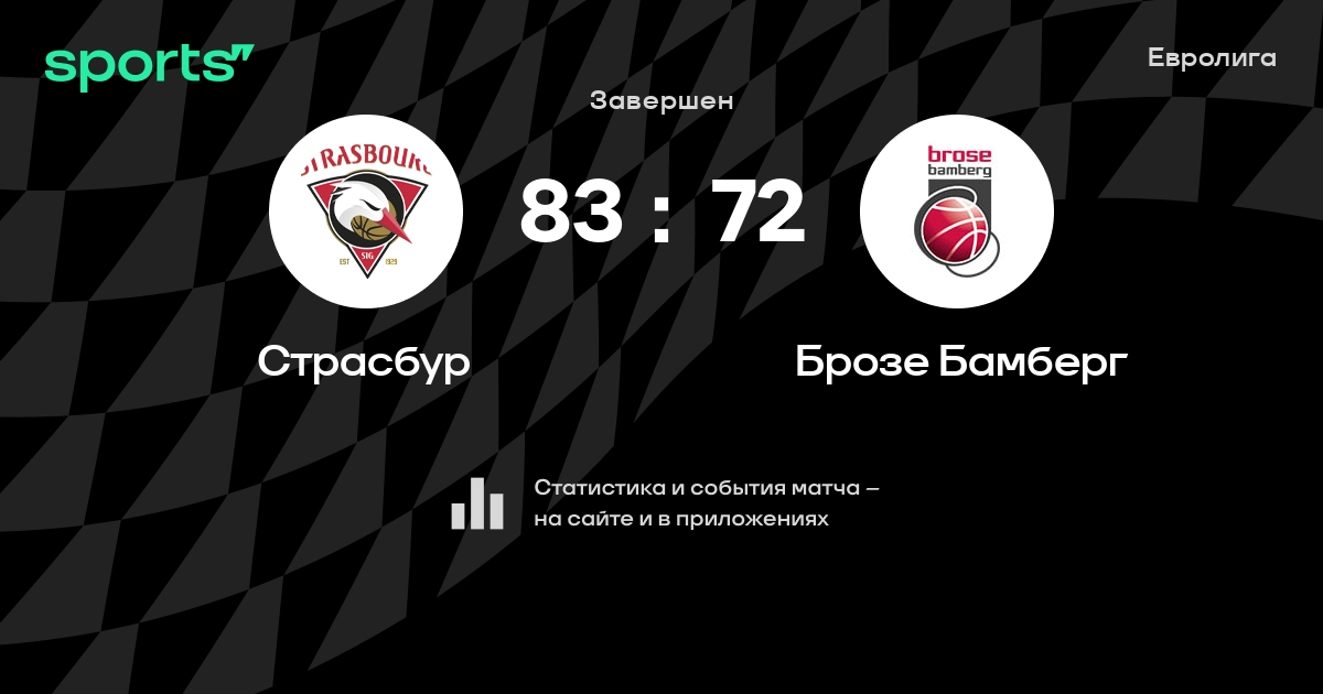 В прошедшем матче в рамках турнира Евролига Группа B состоялась встреча команд Страсбур - Брозе Бамберг в городе Страсбург (Франция) на стадионе Реню Спорт (вместимость - 6200)