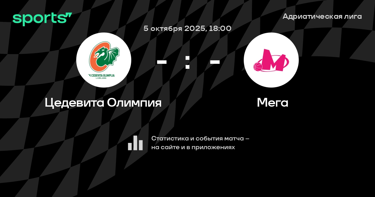 В предстоящем матче в рамках турнира Адриатическая лига пройдет встреча команд Цедевита Олимпия - Мега в городе на стадионе Dvorana Stožice.