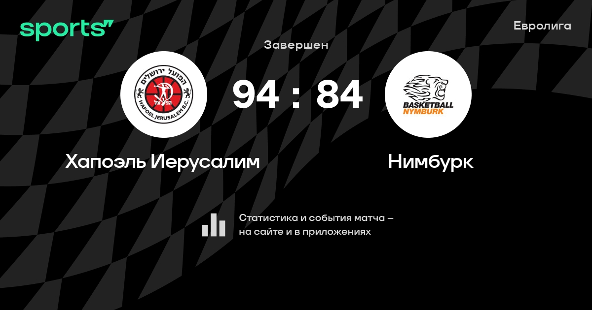 В прошедшем матче в рамках турнира Евролига 1-й квалификационный раунд состоялась встреча команд Хапоэль Иерусалим - Нимбурк в городе Остенде (Бельгия) на стадионе Слейтер Арена (вместимость - 5000)