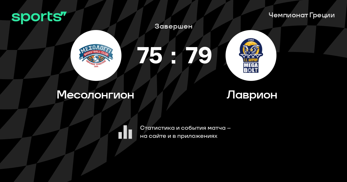В прошедшем матче в рамках турнира Чемпионат Греции состоялась встреча команд Месолонгион - Лаврион в городе на стадионе Kleisto DAK Agriniou Mihalis Kousis