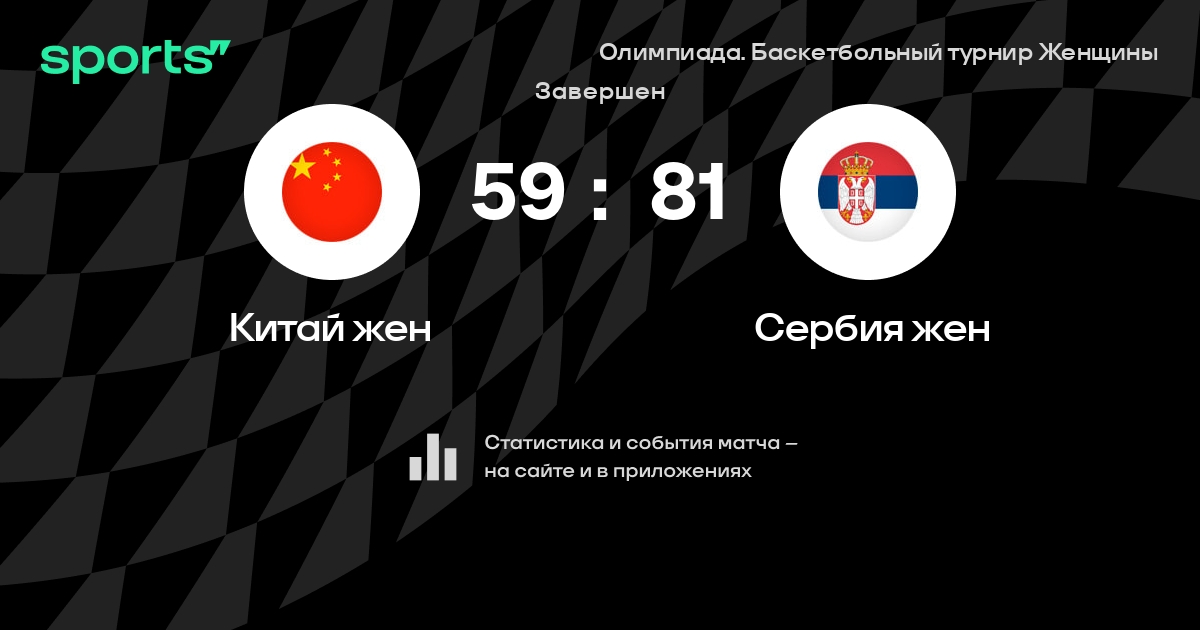 В прошедшем матче в рамках турнира Олимпиада. Баскетбольный турнир Женщины состоялась встреча команд Китай жен - Сербия жен в городе на стадионе Stade Pierre-Mauroy