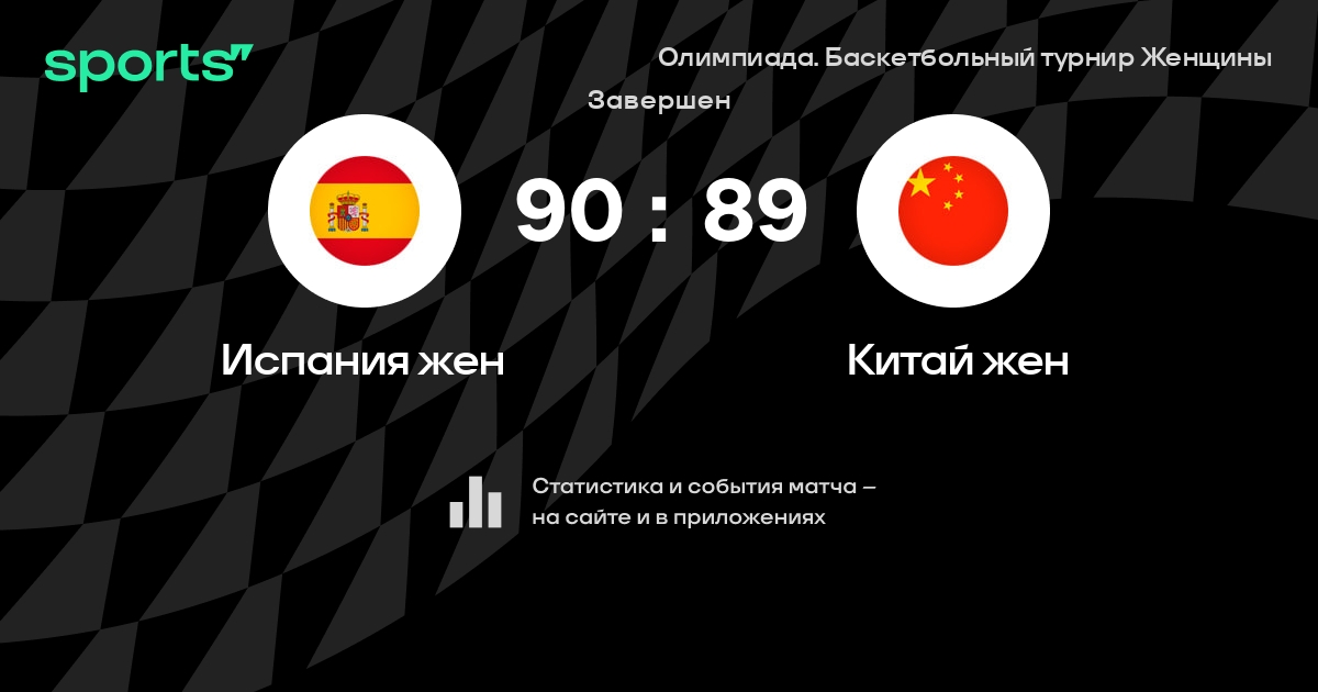 В прошедшем матче в рамках турнира Олимпиада. Баскетбольный турнир Женщины состоялась встреча команд Испания жен - Китай жен в городе на стадионе Stade Pierre-Mauroy