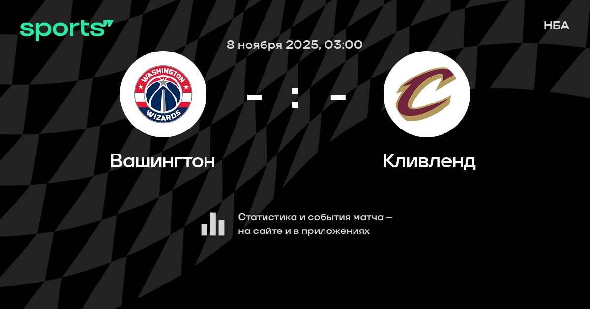 В предстоящем матче в рамках турнира НБА пройдет встреча команд Вашингтон - Кливленд . Начало встречи запланировано на 03:00 8 ноября 2025.