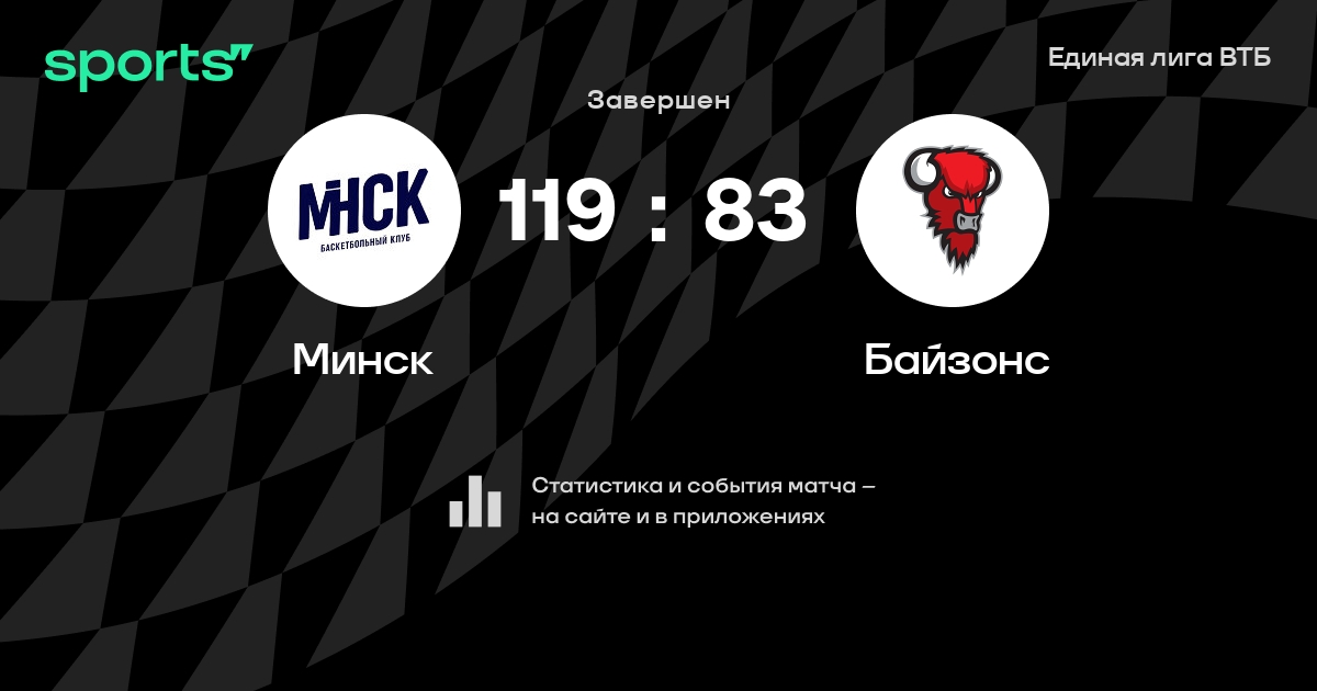 В прошедшем матче в рамках турнира Единая лига ВТБ состоялась встреча команд Минск - Байзонс в городе Минск (Беларусь) на стадионе Минск-Арена (вместимость - 15086)