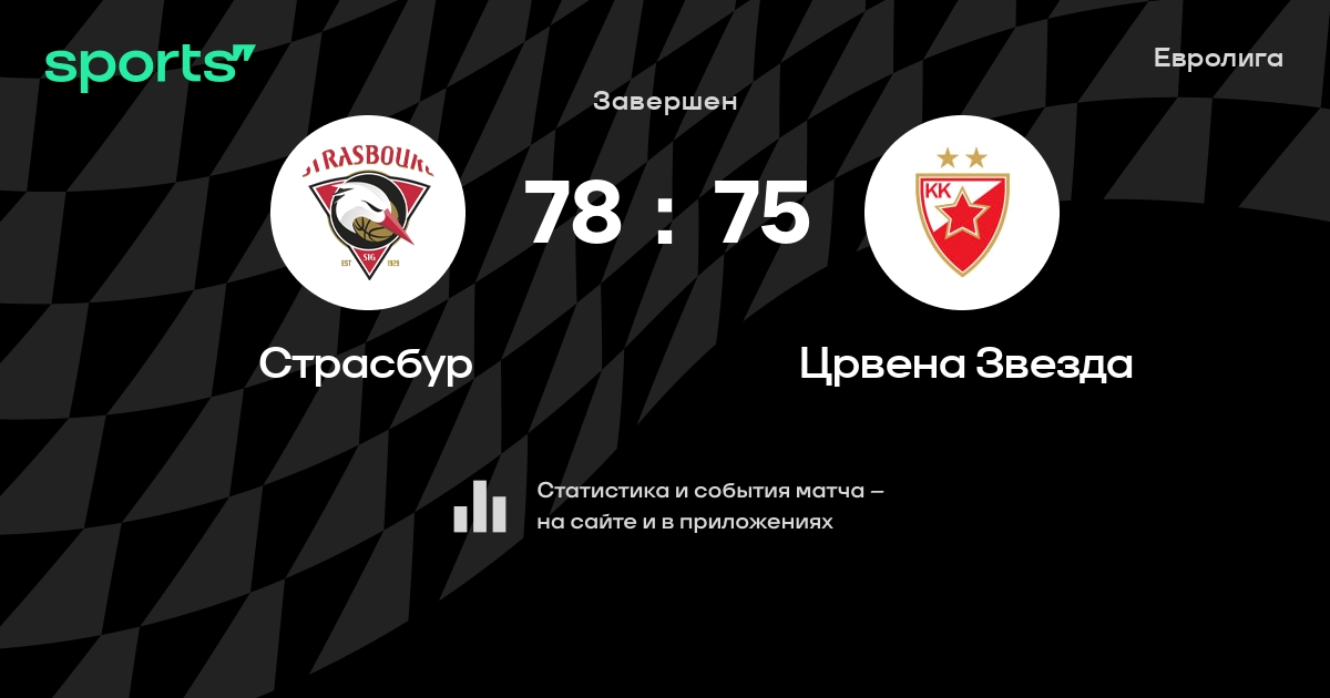 В прошедшем матче в рамках турнира Евролига Группа A состоялась встреча команд Страсбур - Црвена Звезда в городе Страсбург (Франция) на стадионе Реню Спорт (вместимость - 6200)