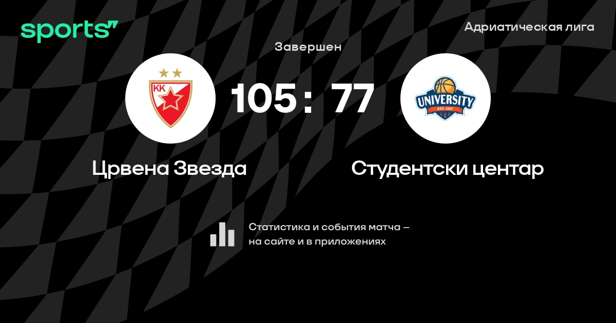 В прошедшем матче в рамках турнира Адриатическая лига состоялась встреча команд Црвена Звезда - Студентски центар в городе Белград (Сербия) на стадионе Александар Николич Холл (вместимость - 7000)