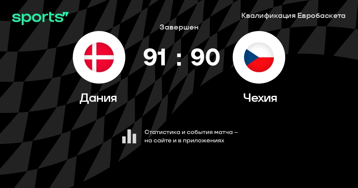 В прошедшем матче в рамках турнира Квалификация Евробаскета состоялась встреча команд Дания - Чехия в городе Vilnius на стадионе Siemens Arena со счетом 91 : 90.