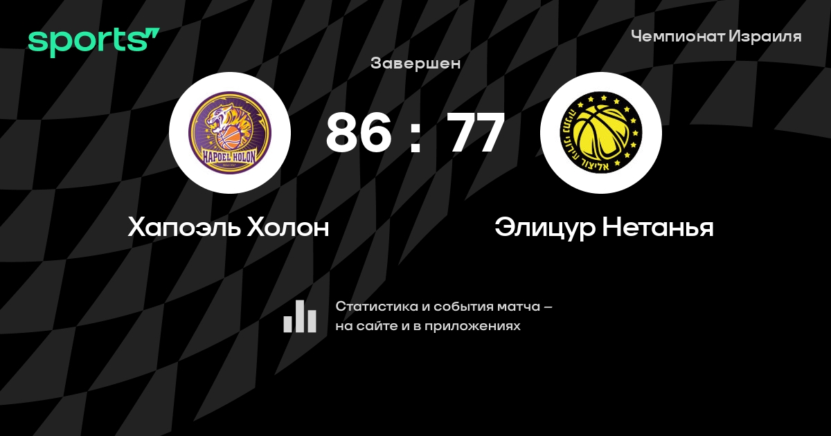 В прошедшем матче в рамках турнира Чемпионат Израиля состоялась встреча команд Хапоэль Холон - Элицур Нетанья в городе на стадионе Holon Toto Hall