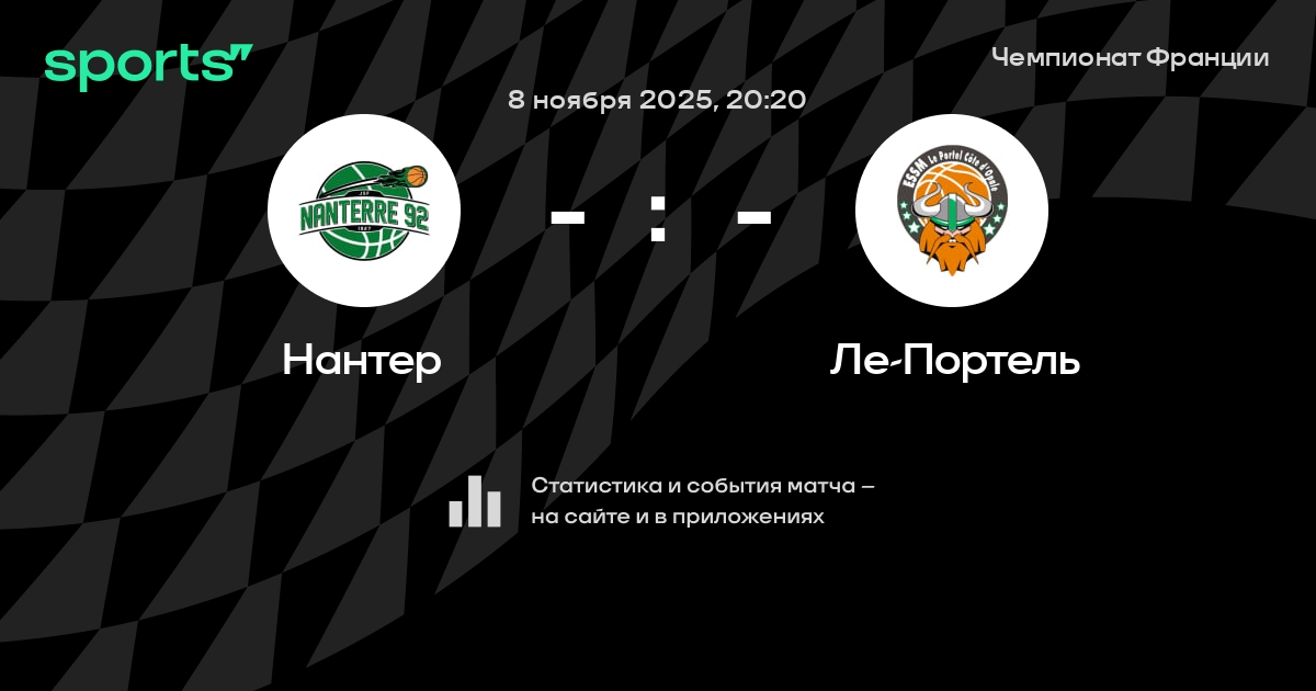 В предстоящем матче в рамках турнира Чемпионат Франции пройдет встреча команд Нантер - Ле-Портель в городе на стадионе Palais des Sports Maurice Thorez.