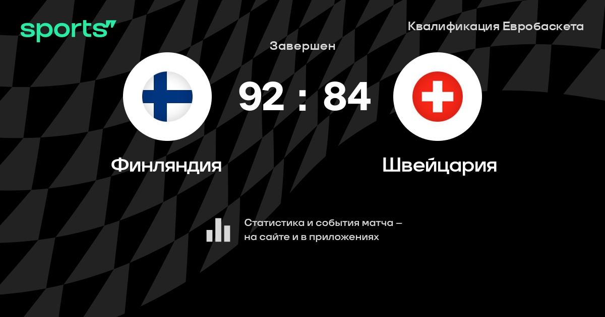 В прошедшем матче в рамках турнира Квалификация Евробаскета состоялась встреча команд Финляндия - Швейцария в городе Тбилиси (Грузия) на стадионе Дворец спорта (вместимость - 9700)
