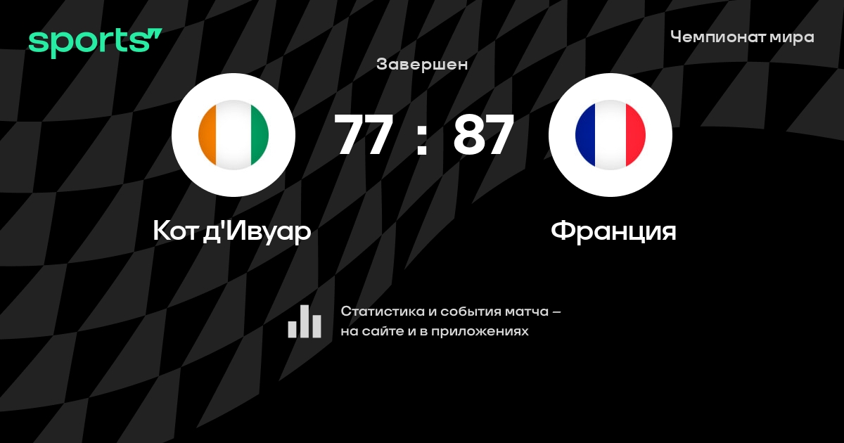 В прошедшем матче в рамках турнира Чемпионат мира Квалификационный этап за 17-32 места состоялась встреча команд Кот д'Ивуар - Франция в городе на стадионе Indonesia Arena