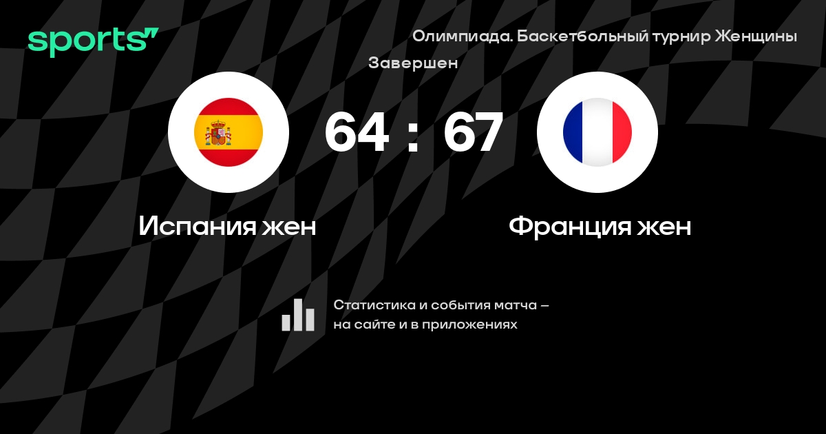 В прошедшем матче в рамках турнира Олимпиада. Баскетбольный турнир Женщины Четвертьфинал состоялась встреча команд Испания жен - Франция жен в городе Saitama на стадионе Saitama Super Arena