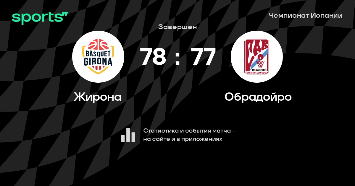 В прошедшем матче в рамках турнира Чемпионат Испании состоялась встреча команд Жирона - Обрадойро в городе на стадионе Pavelló Municipal d'Esports Girona-Fontajau