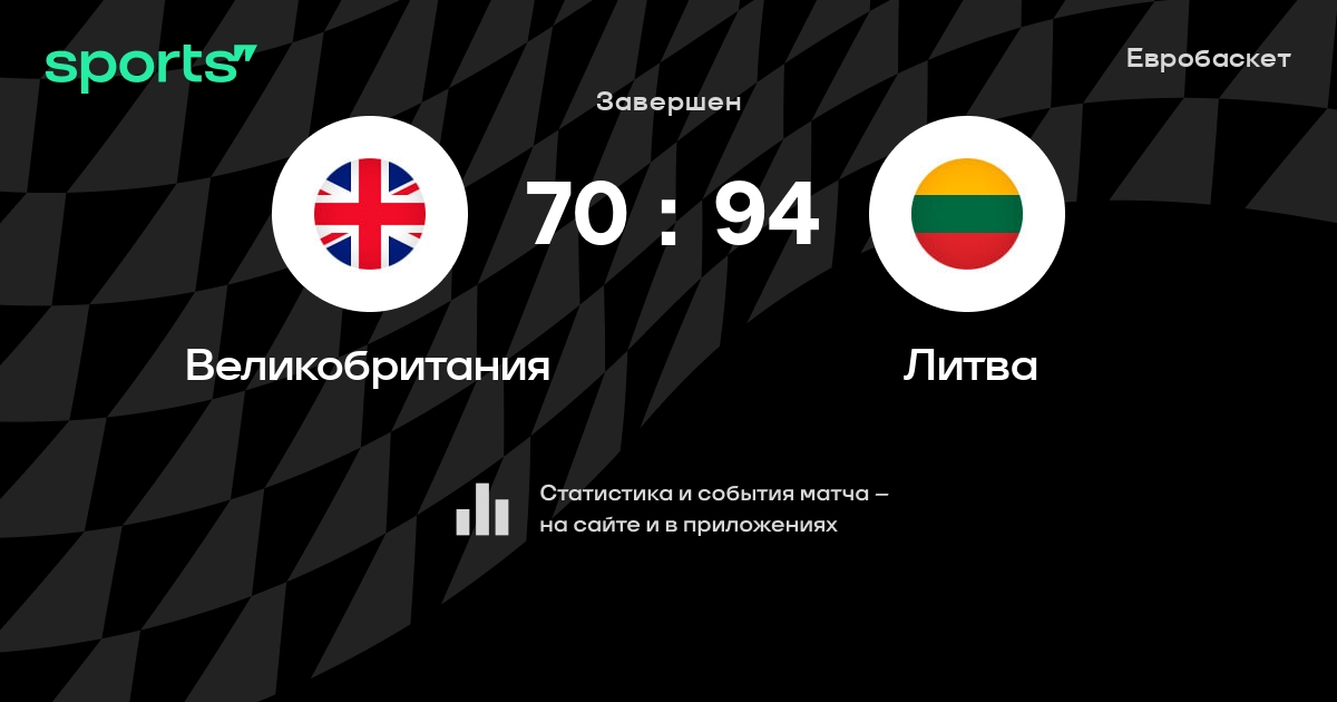 В прошедшем матче в рамках турнира Евробаскет состоялась встреча команд Великобритания - Литва в городе на стадионе Nokia Arena со счетом 70 : 94.