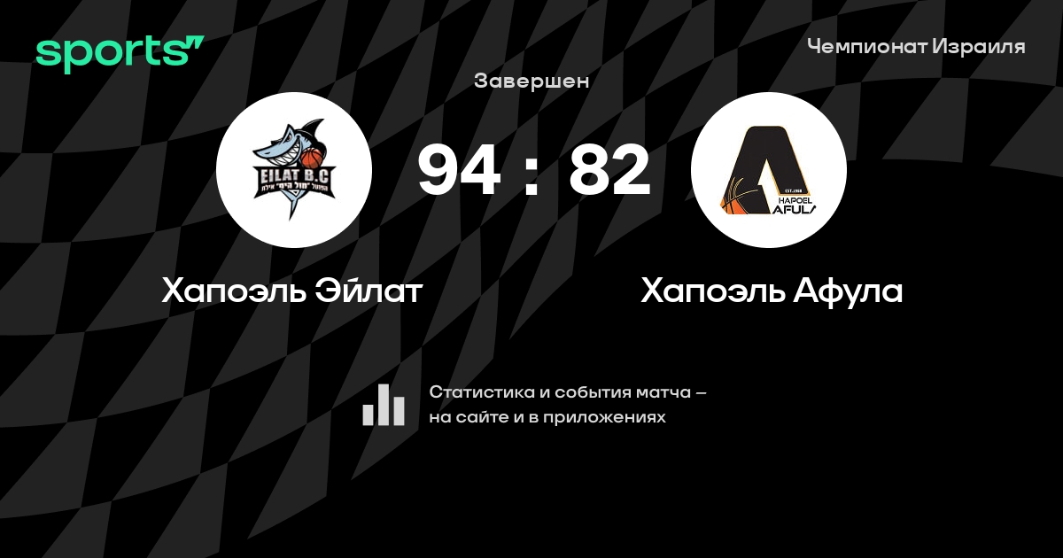 В прошедшем матче в рамках турнира Чемпионат Израиля состоялась встреча команд Хапоэль Эйлат - Хапоэль Афула в городе на стадионе Begin Eilat Sports Hall