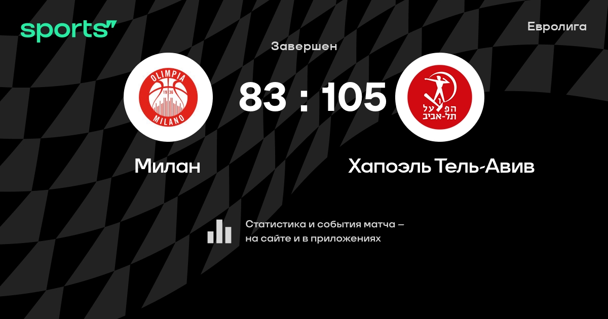 В прошедшем матче в рамках турнира Евролига состоялась встреча команд Милан - Хапоэль Тель-Авив в городе Ассаго (Италия) на стадионе Униполь Форум (вместимость - 11200)