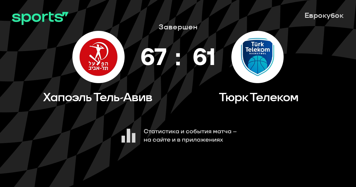 В прошедшем матче в рамках турнира Еврокубок Четвертьфинал состоялась встреча команд Хапоэль Тель-Авив - Тюрк Телеком в городе на стадионе Arena Samokov