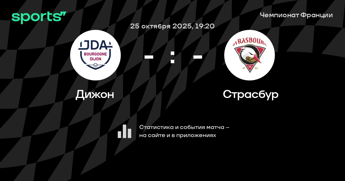 В предстоящем матче в рамках турнира Чемпионат Франции пройдет встреча команд Дижон - Страсбур в городе на стадионе Palais des Sports Jean-Michel Geoffroy.