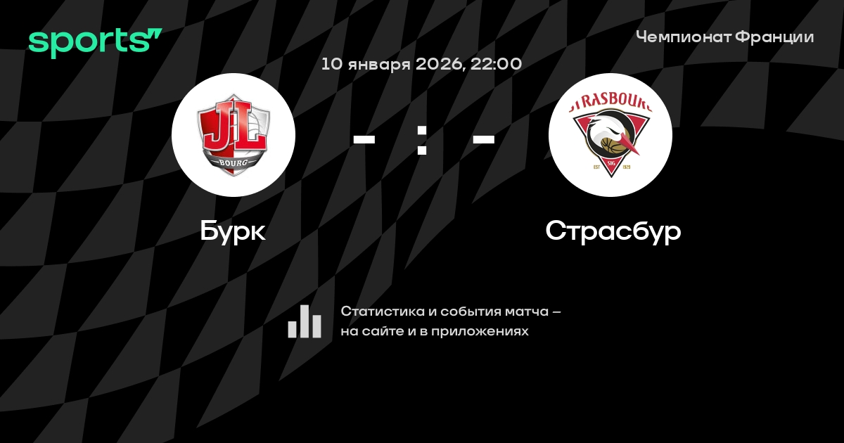 В предстоящем матче в рамках турнира Чемпионат Франции пройдет встреча команд Бурк - Страсбур в городе на стадионе Ekinox.