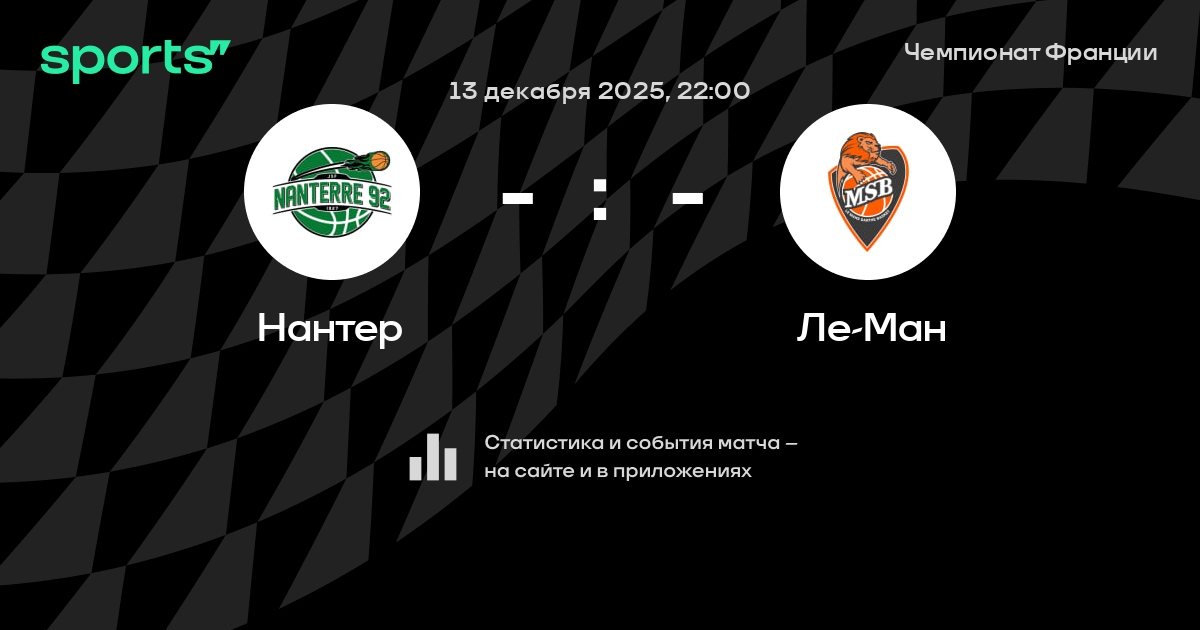 В предстоящем матче в рамках турнира Чемпионат Франции пройдет встреча команд Нантер - Ле-Ман в городе на стадионе Palais des Sports Maurice Thorez.