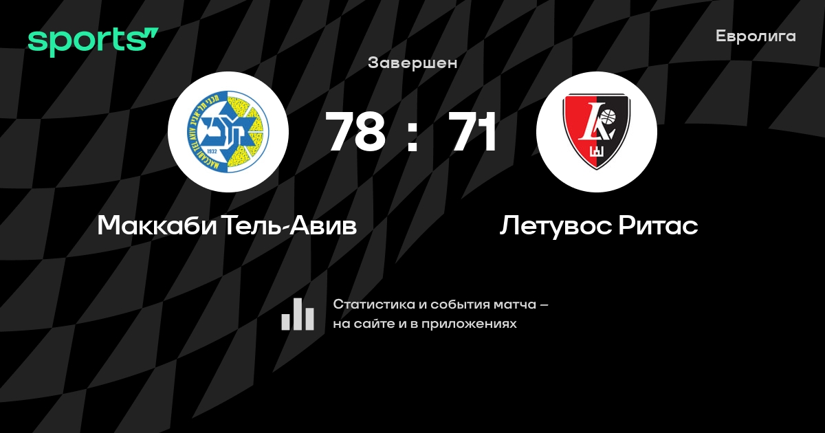 В прошедшем матче в рамках турнира Евролига Группа D состоялась встреча команд Маккаби Тель-Авив - Летувос Ритас в городе Тель-Авив (Израиль) на стадионе Менора-Мивтахим Арена (вместимость - 11700)