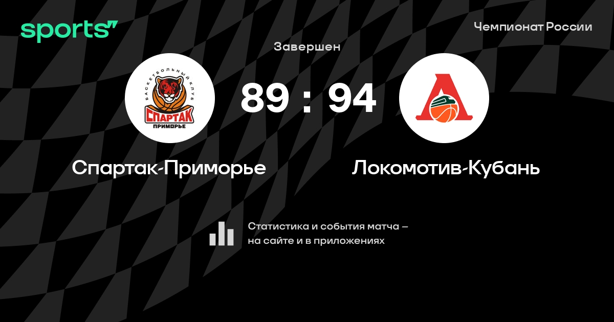 В прошедшем матче в рамках турнира Чемпионат России состоялась встреча команд Спартак-Приморье - Локомотив-Кубань со счетом 89 : 94.