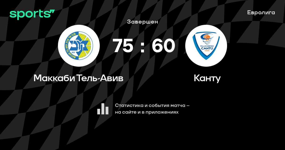 В прошедшем матче в рамках турнира Евролига Топ 16 состоялась встреча команд Маккаби Тель-Авив - Канту в городе Тель-Авив (Израиль) на стадионе Менора-Мивтахим Арена (вместимость - 11700)
