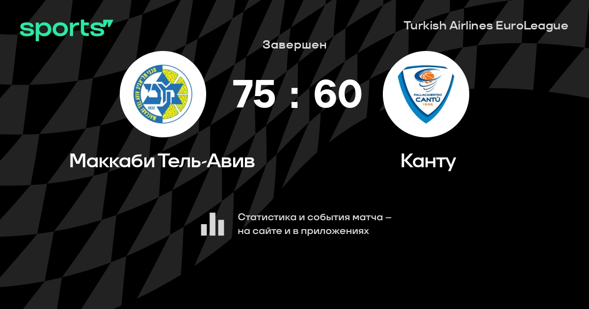 В прошедшем матче в рамках турнира Turkish Airlines EuroLeague Топ 16 состоялась встреча команд Маккаби Тель-Авив - Канту в городе Тель-Авив (Израиль) на стадионе Менора-Мивтахим Арена (вместимость - 11700)
