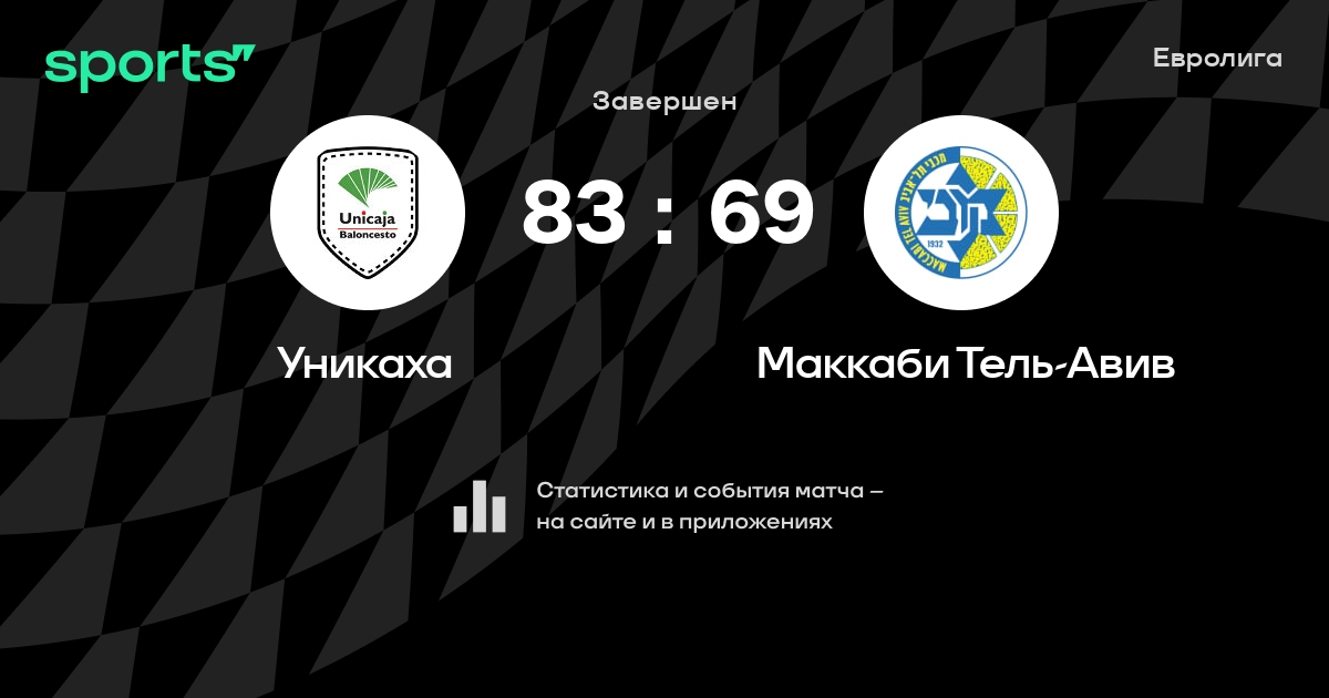 В прошедшем матче в рамках турнира Евролига состоялась встреча команд Уникаха - Маккаби Тель-Авив в городе Малага (Испания) на стадионе Паласио де Депортес де Малага (вместимость - 10500)